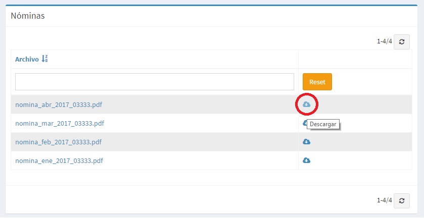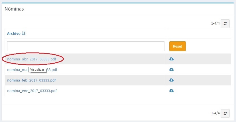 Haciendo click en el nombre del archivo se visualizará en otra pestaña, si lo que queremos es descargarlo haremos click en el icono de la derecha.