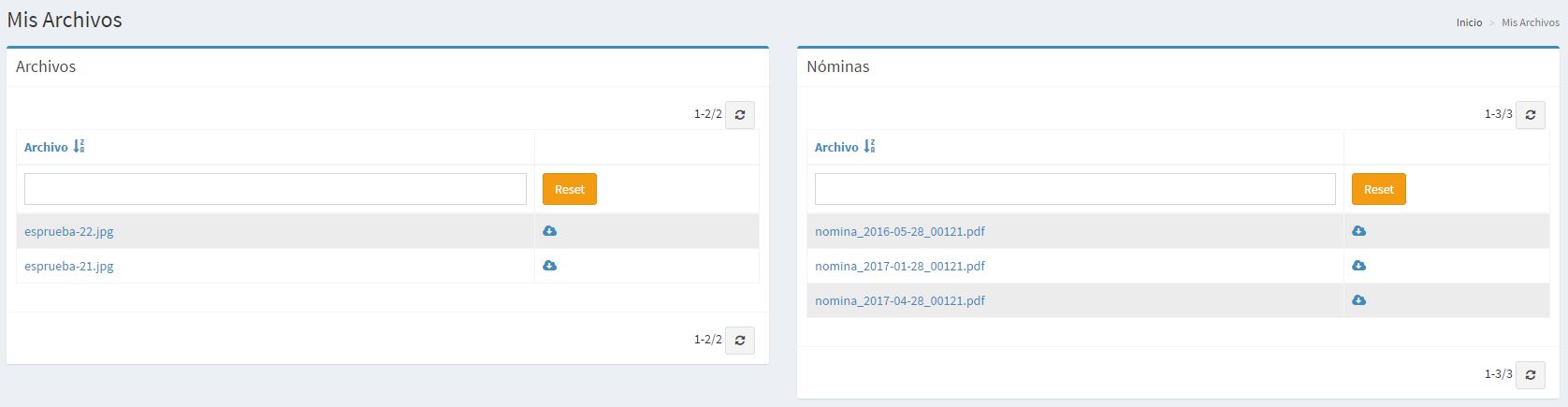 A la izquierda los archivos generales que nos han sido asociados(prevención de riesgos, convenio, etc..) y a la derecha las nóminas.