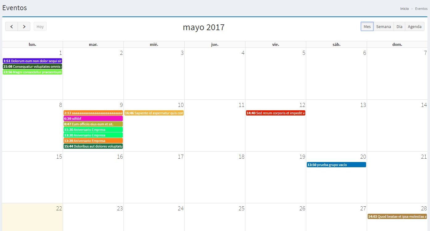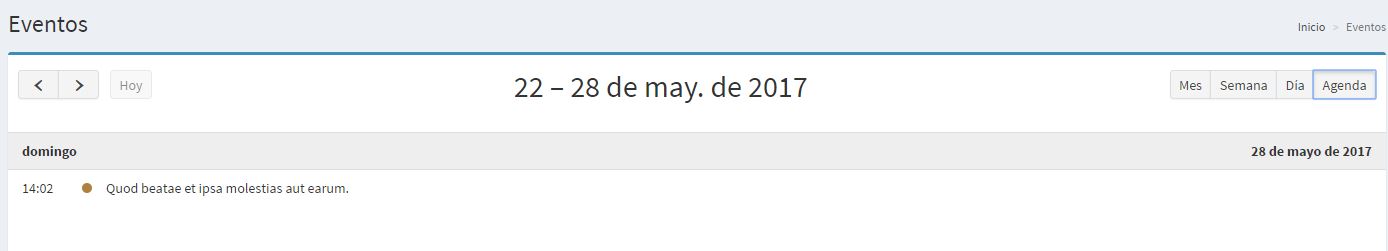 Al acceder a este apartado, se muestra la agenda de la semana actual, con los eventos de la misma si les hubiese.