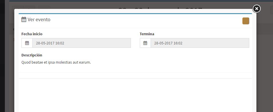 Haciendo click sobre el nombre del evento se abre una ventana que nos muestra con detalle los datos del mismo: