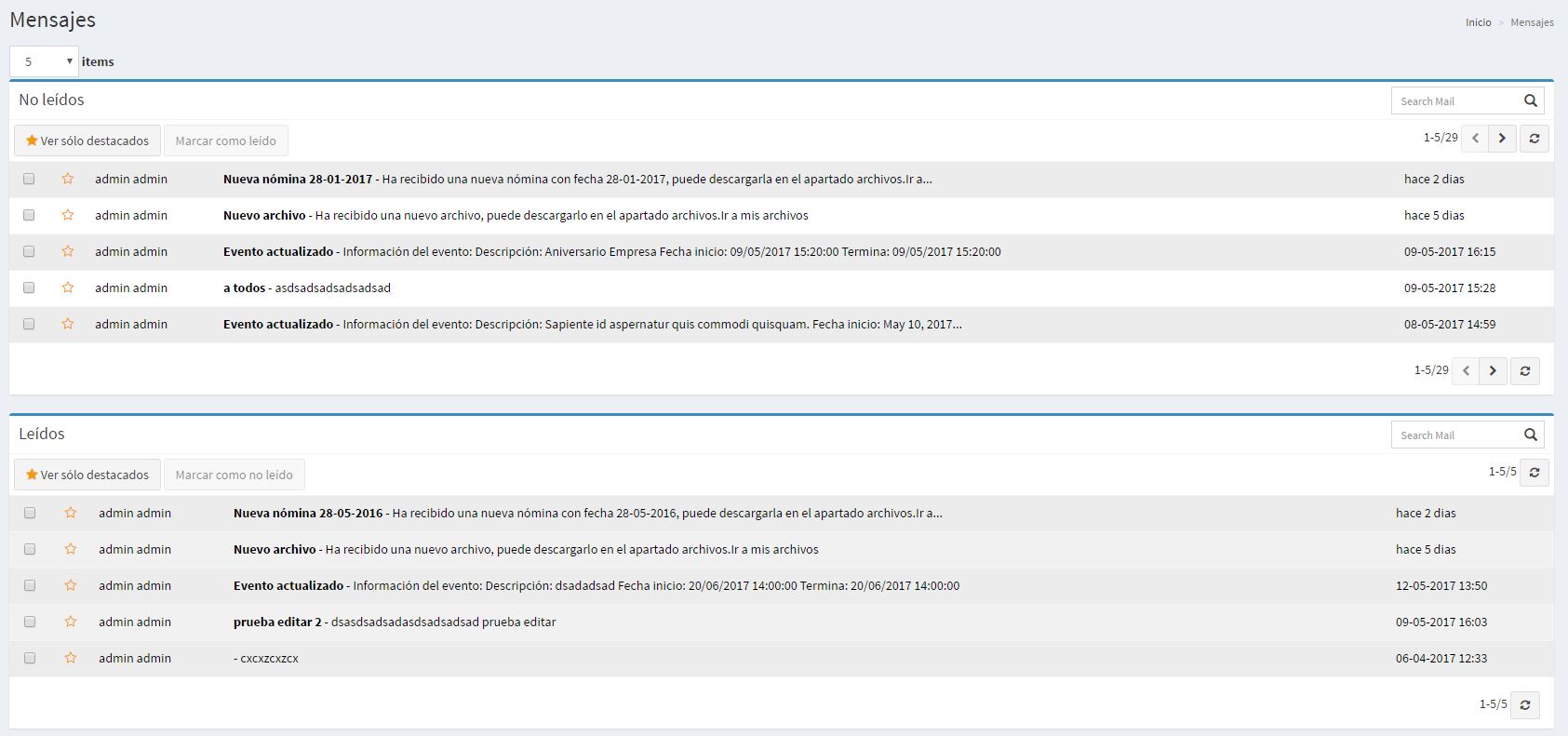 El superior dónde se muestran los mensajes no leídos, y el inferior dónde podremos ver los mensajes ya leídos.