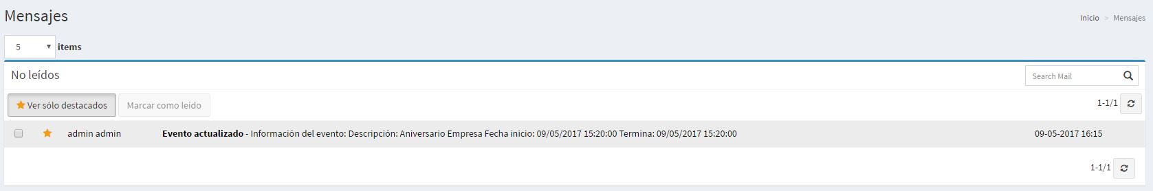 Por último un resumen con los 5 mensajes nuevos más recientes que hayamos recibido y un enlace de acceso directo a la bandeja de entrada de mensajes.