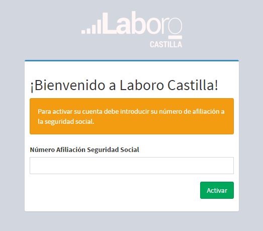 La primera vez que entremos en el sistema se nos pedirá introducir el número de afiliación a la seguridad social para verificar nuestra identidad y activar la cuenta de usuario.