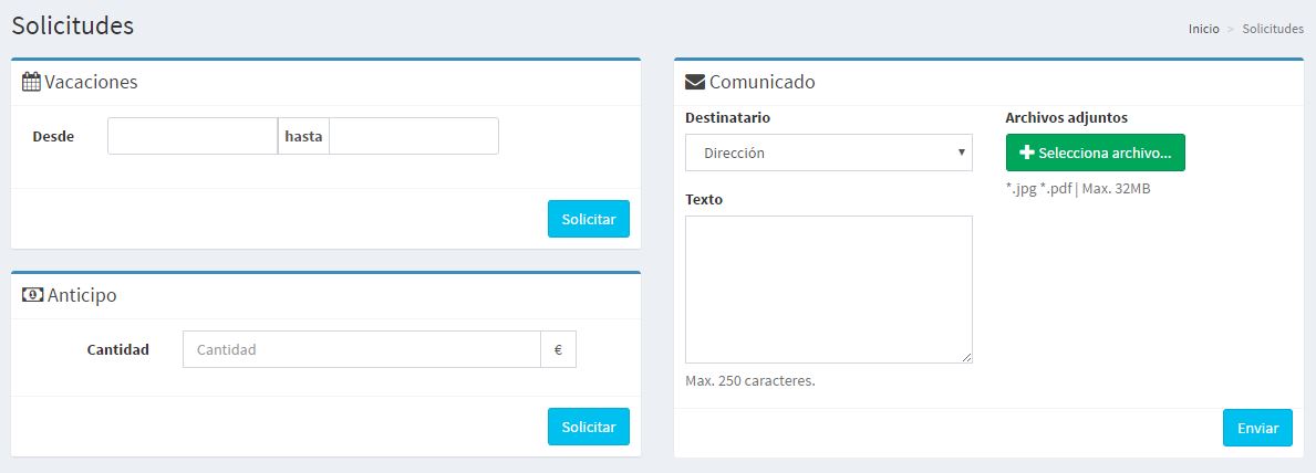 Desde éste apartado podemos realizar solicitudes de varios tipos: